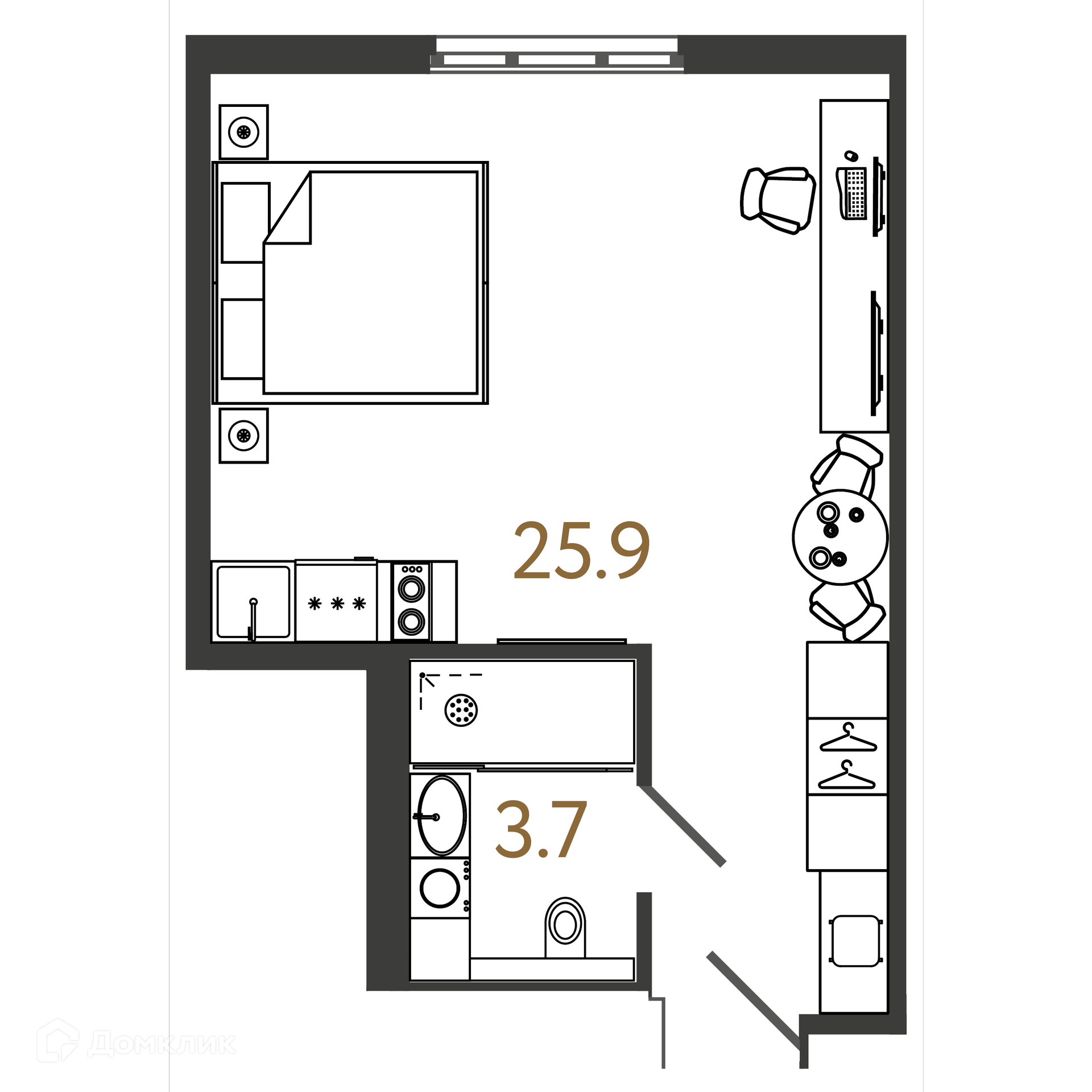 Общая площадь 29.6 м2