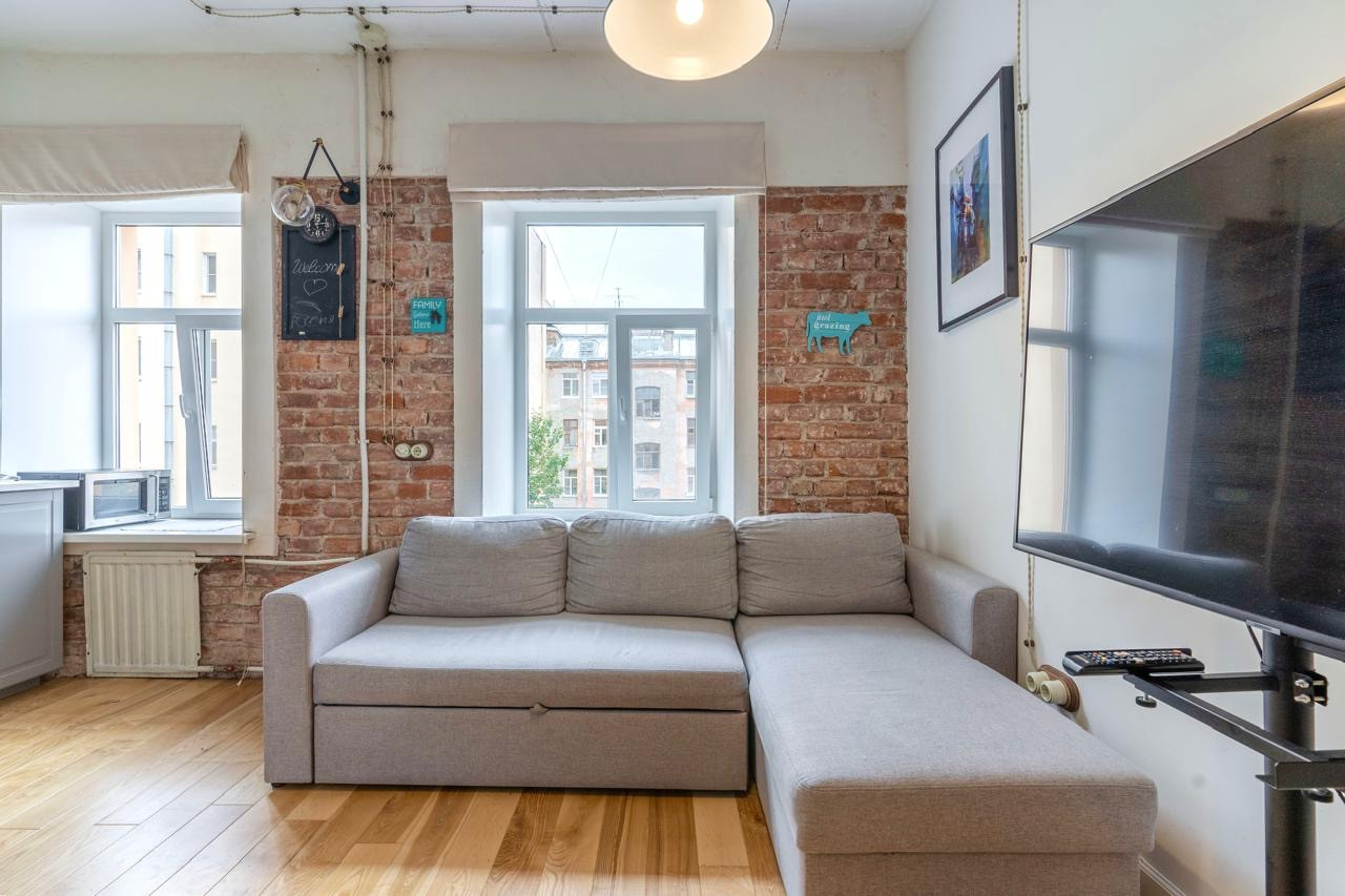 - Отреставрированные кирпичные стены, натуральный паркет, новые трубы и электрика.