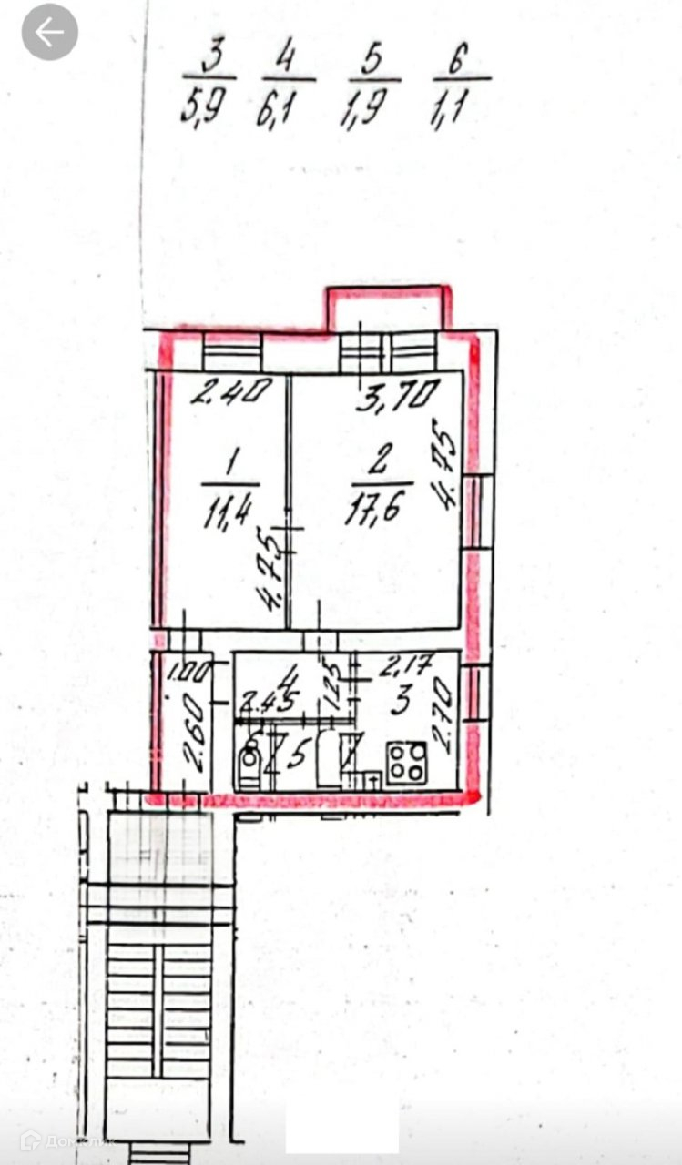 Изолированные комнаты 11,4 и 17,6 кв.м. Из большой комнаты есть выход на балкон.