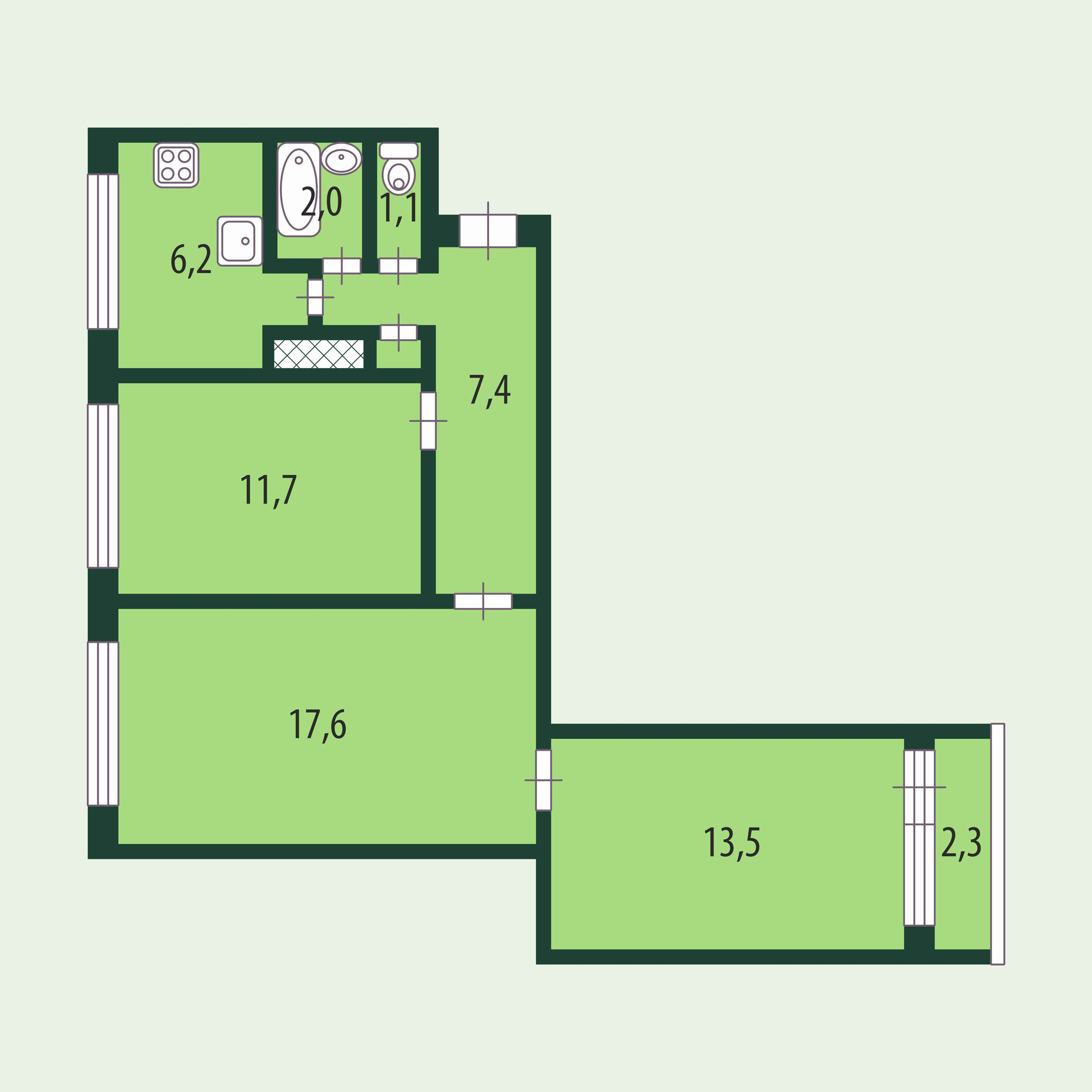 Общая площадь 60 м2