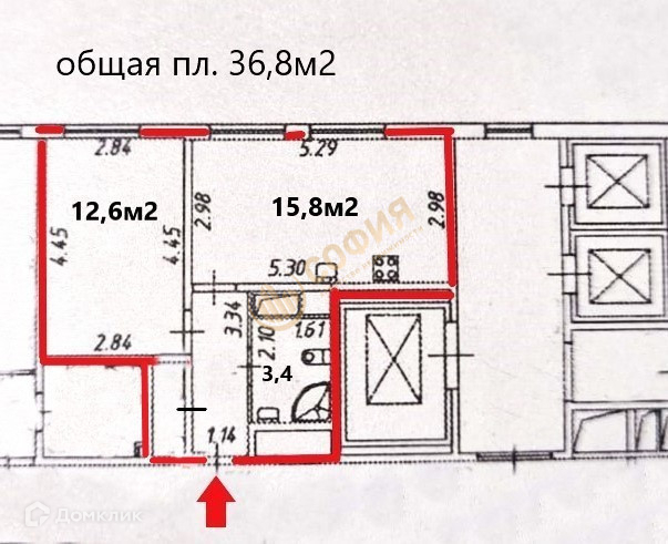 Общая площадь 36.8 м2