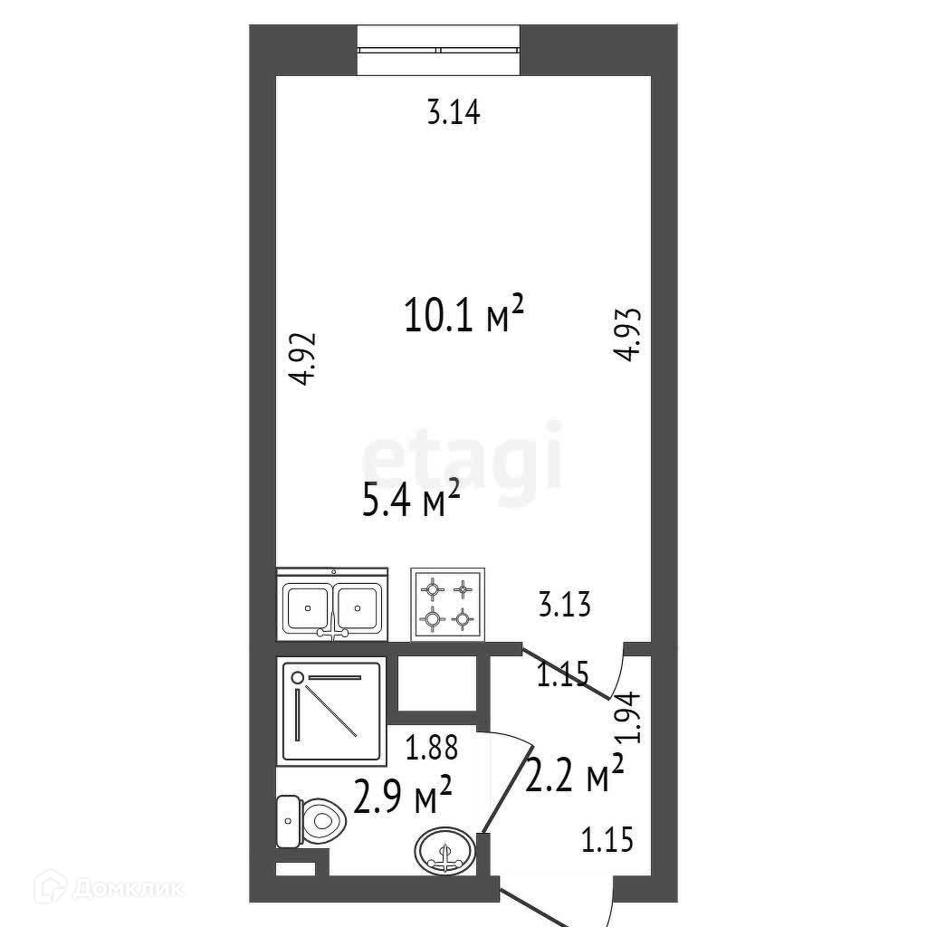 Общая площадь 20.6 м2