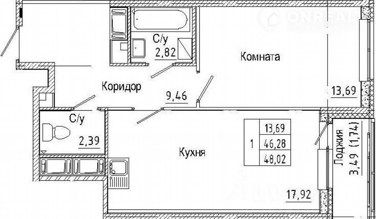 Общая площадь 46 м2