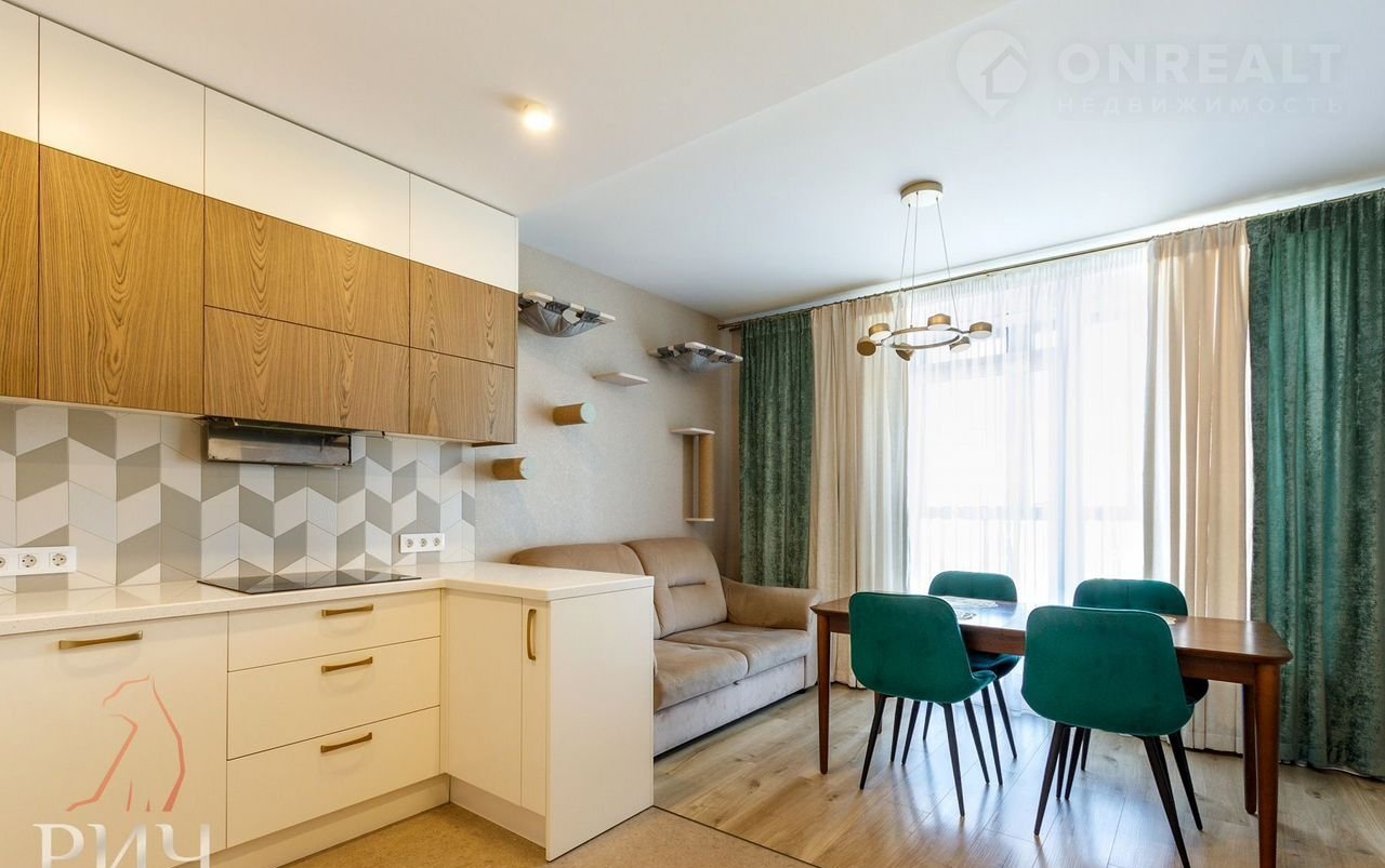 - Кухня-гостиная с выходом на застекленную лоджию — идеальное место для утреннего кофе и вечерних посиделок.