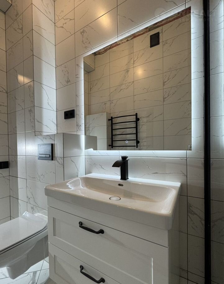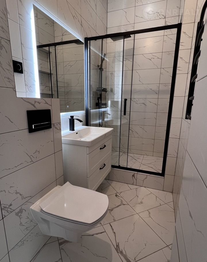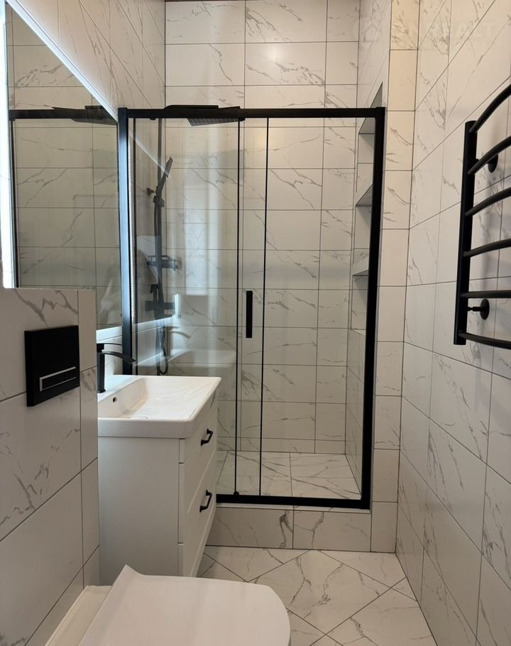 - санузел сделан ПОД КЛЮЧ с современными решениями, скрытыми люками, ТЕПЛЫМ ПОЛОМ, которым можно управлять через АЛИСУ (умный дом), новой сантехникой, эргономичной душевой с полочками, все выверено и просчитано