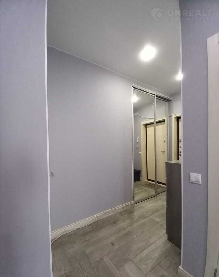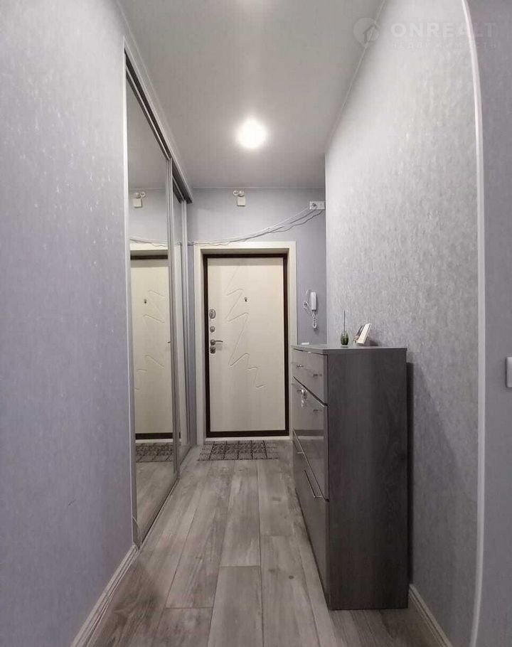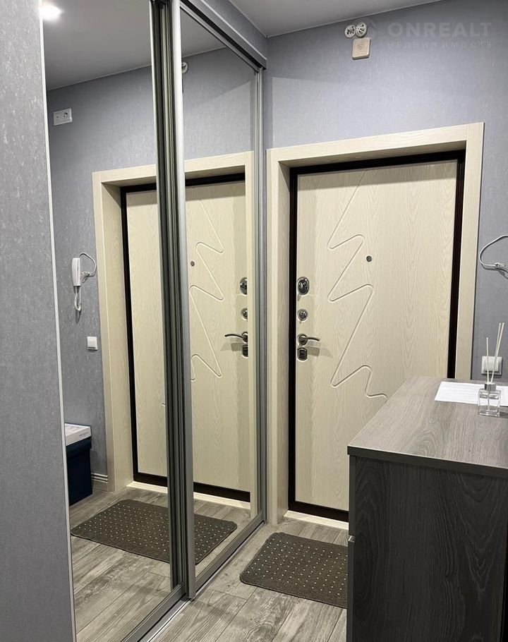 В прихожей установлен встроенный шкаф-купе с зеркальными дверями, что визуально увеличивает пространство.