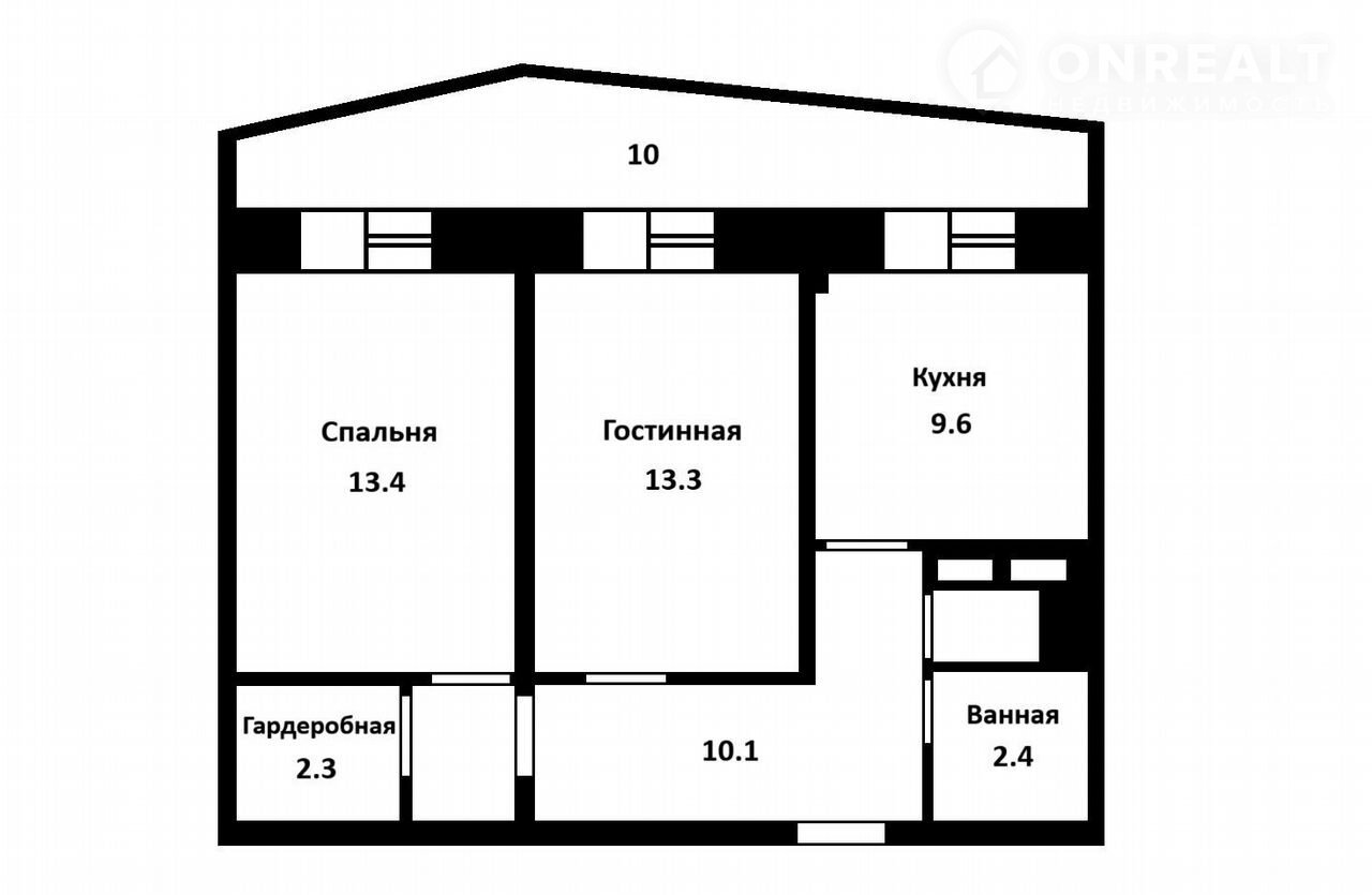Общая площадь 52.9 м2