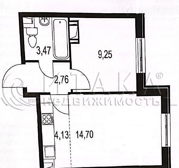 Общая площадь 34.7 м2