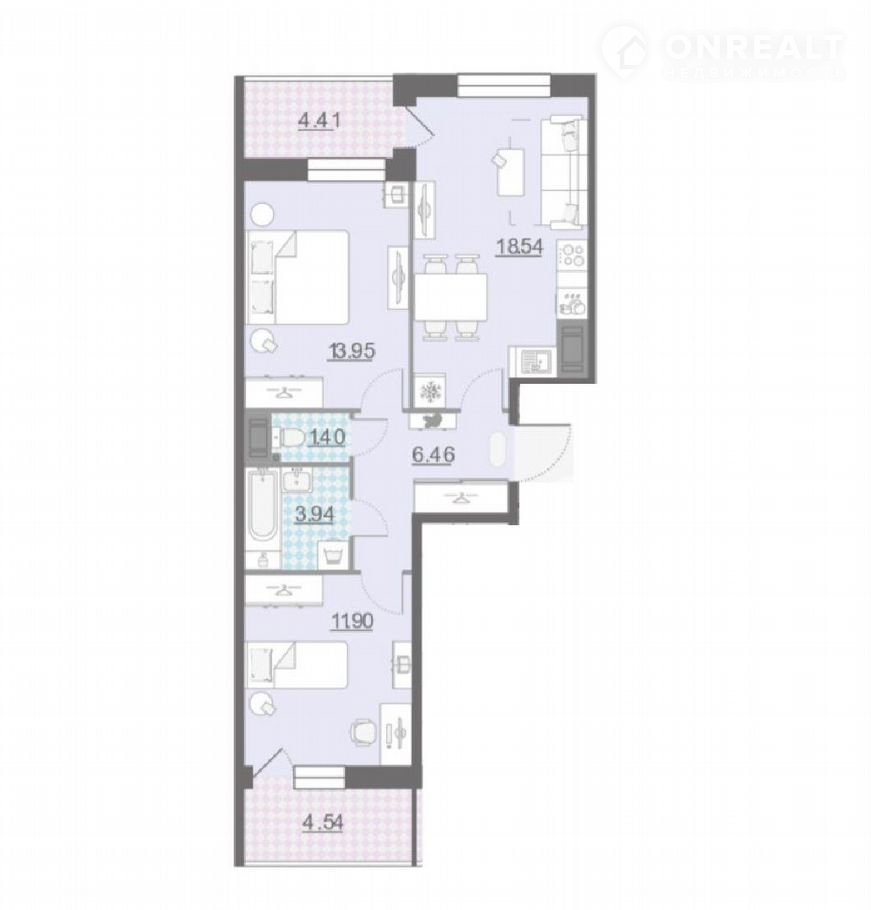 2-комнатная квартира, 56.5 м2, этаж 8 / 15, на продажу в Санкт-Петербурге, проспект Крузенштерна, 2
