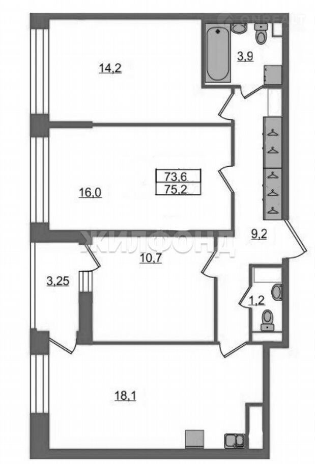 Общая площадь 75.3 м2