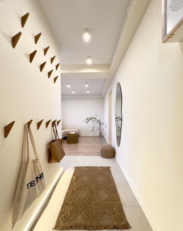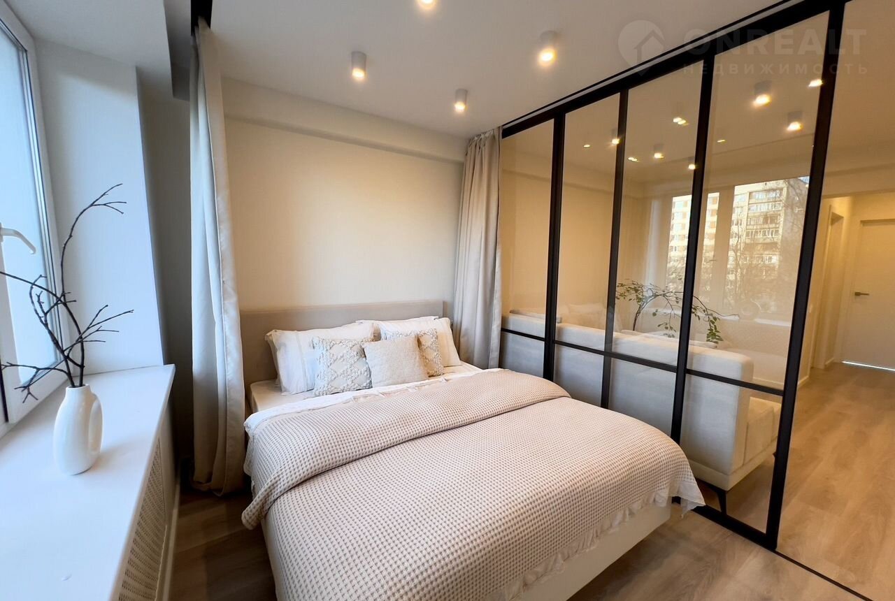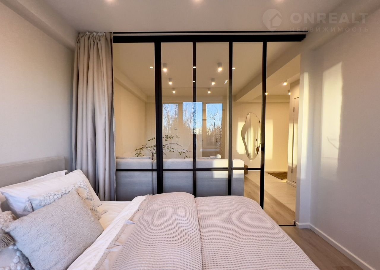 НА СТЕНАХ КРАСКА, потолки со скрытыми карнизами. Стильная раздвижная перегородка.