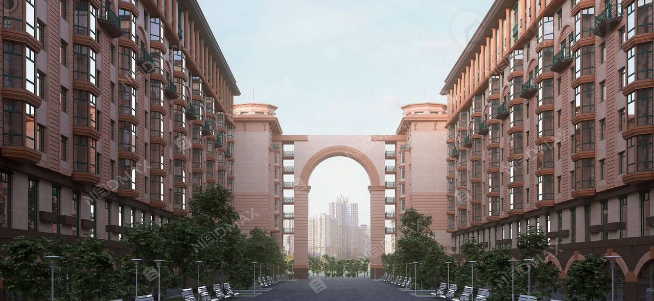 Территория комплекса огорожена. Все корпуса выдержаны в едином архитектурном стиле. Во внешней и внутренней отделке корпусов использован натуральный камень и высококачественный европейский облицовочный керамический кирпич.