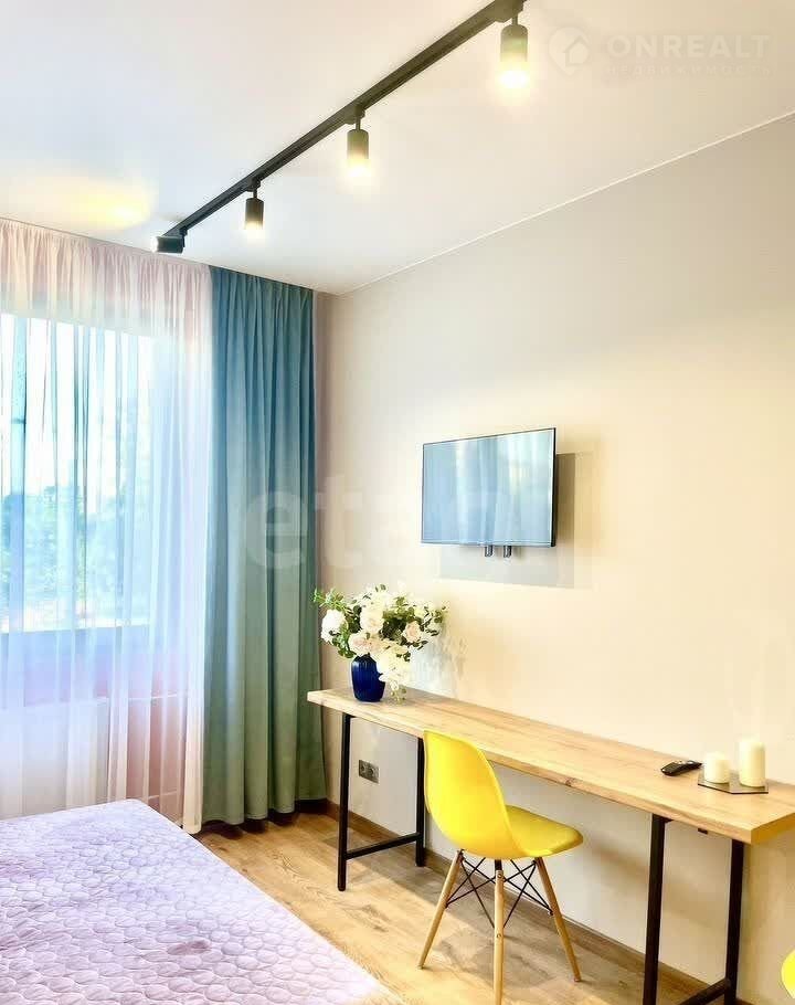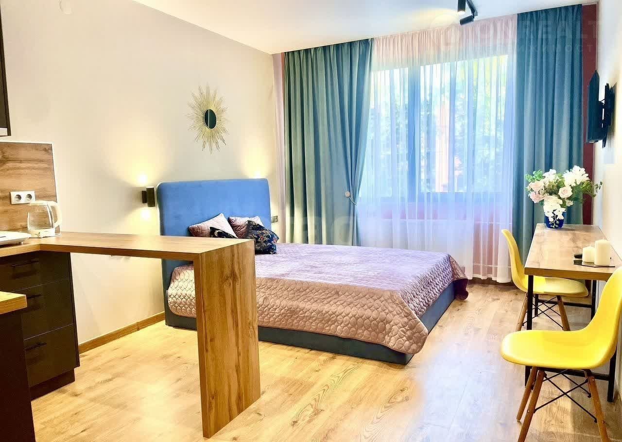 *   Характеристики: Студия 25 кв.м с дизайнерским ремонтом, светлая и теплая. Высота потолков 2.8 м.