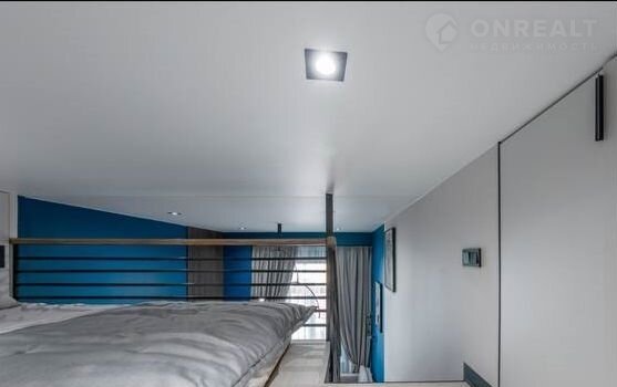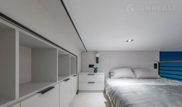 - Второй этаж-спальня площадью 7 кв м с ортопедическим матрацем 1600,в качестве изголовья служит мягкая стеновая панель выполнена из качественой моющейся ткани,