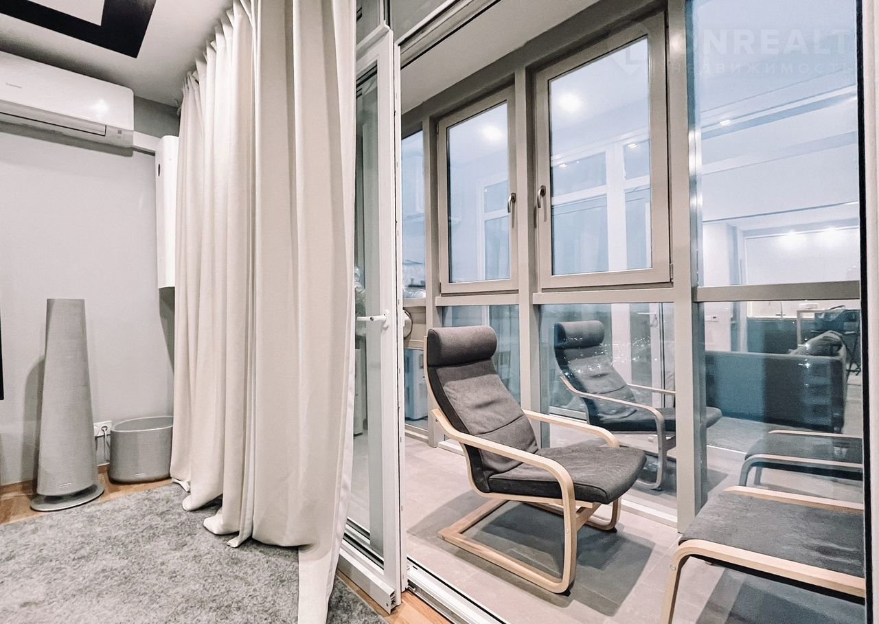 – Гостиная совмещена с кухней. Блэкаут шторы. Есть зона для работы за компьютером, теплая зона отдыха на балконе в уютном кресле.