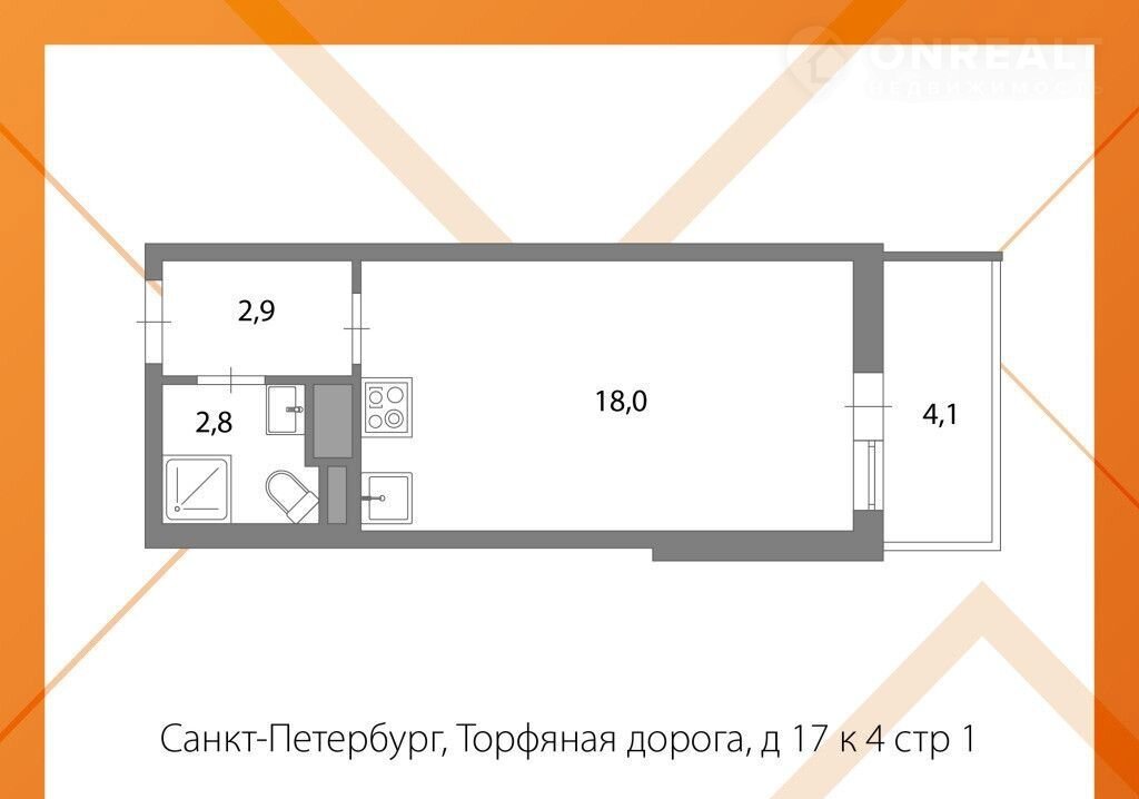 Квартира студия, 23.7 м2, этаж 10 / 11, на продажу в Санкт-Петербурге, Торфяная дорога, 17к4