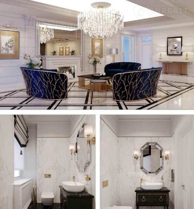 Лобби и Удобства на Первом Этаже: В здании расположены парадный холл с ресепшн, лобби-бар, гостиная, сигарный салон, переговорная и современный спортзал, включающий тренажерный зал, массажный кабинет, сауну и барбершоп. Также предусмотрен премиальный салон красоты RОS.