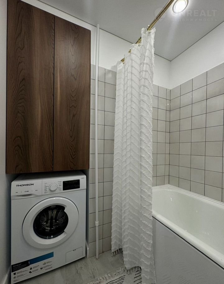Но это ещё не всё,в ванной комнате предусмотрено место со стиральной машиной и зоной хранения.