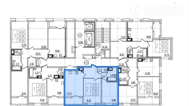 Общая площадь 61.8 м2