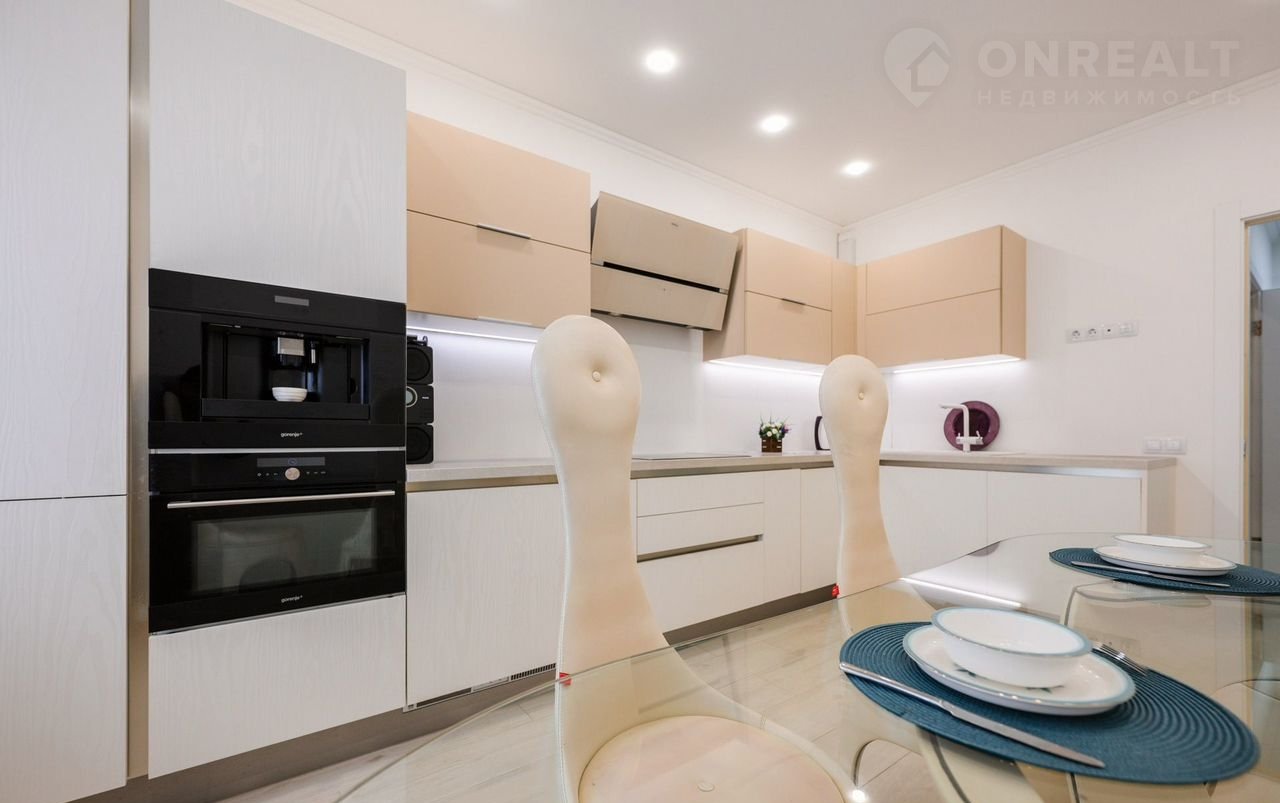 - Кухонная мебель со встроенной техникой премиум-класса (Аskо, Gоrеnjе, Мiеlе): большая посудомоечная машина, варочная панель, духовой шкаф с функцией микроволновки, встроенная кофе-машина, большой холодильник и морозильная камера.