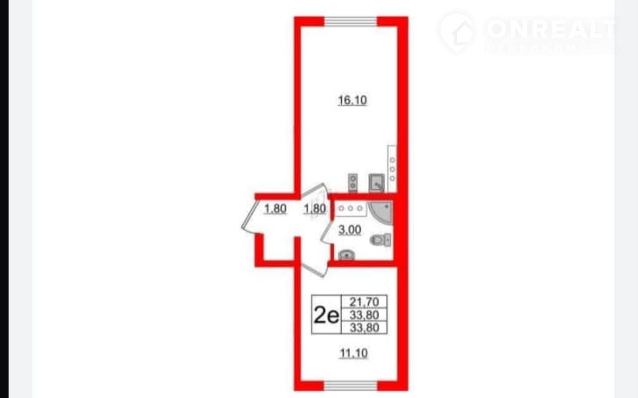 1-комнатная квартира, 33.6 м2, этаж 12 / 23, на продажу в Санкт-Петербурге, Пейзажная улица