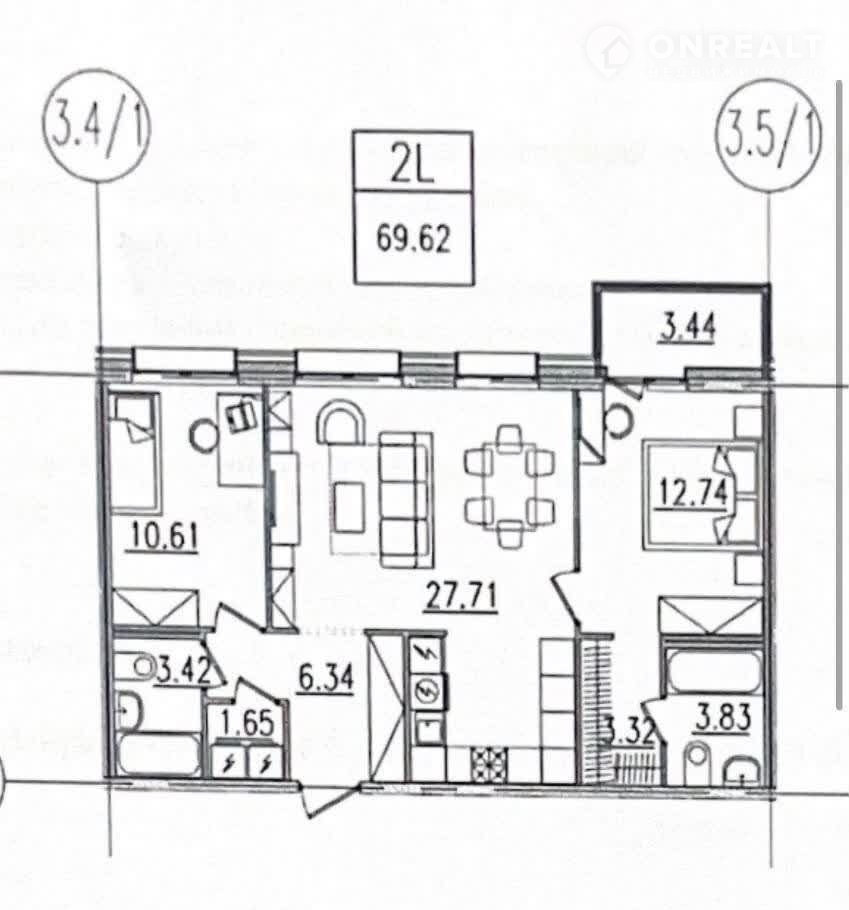 Общая площадь 70 м2