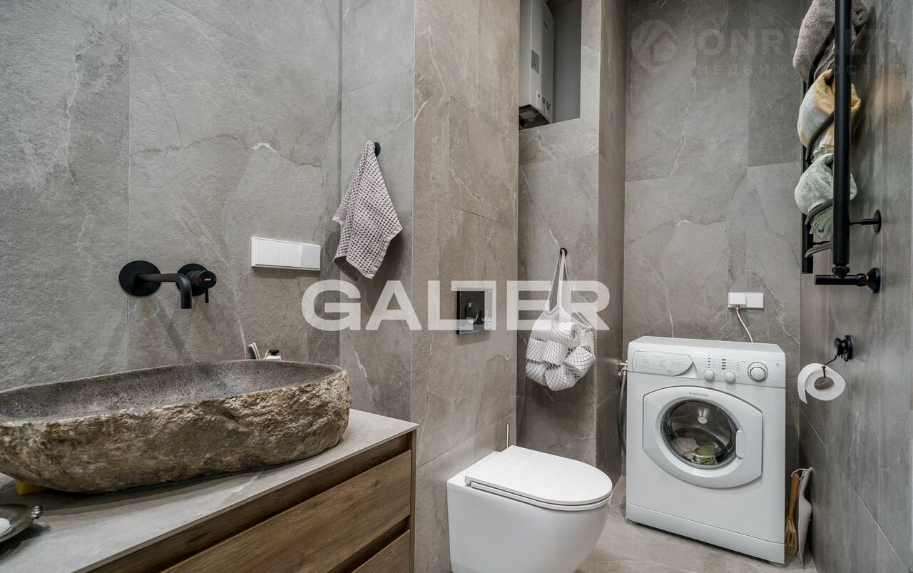 - Просторный санузел с теплым полом