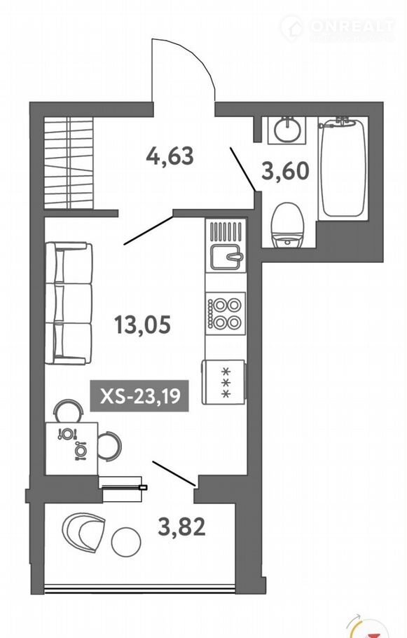 Общая площадь 24 м2