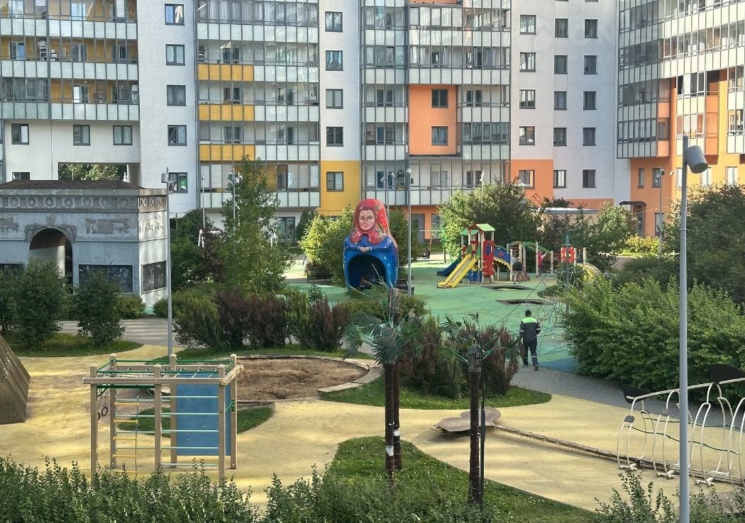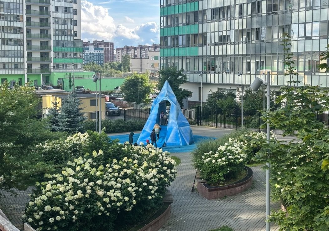 - Во дворах — детские игровые и спортивные площадки, прогулочные зоны