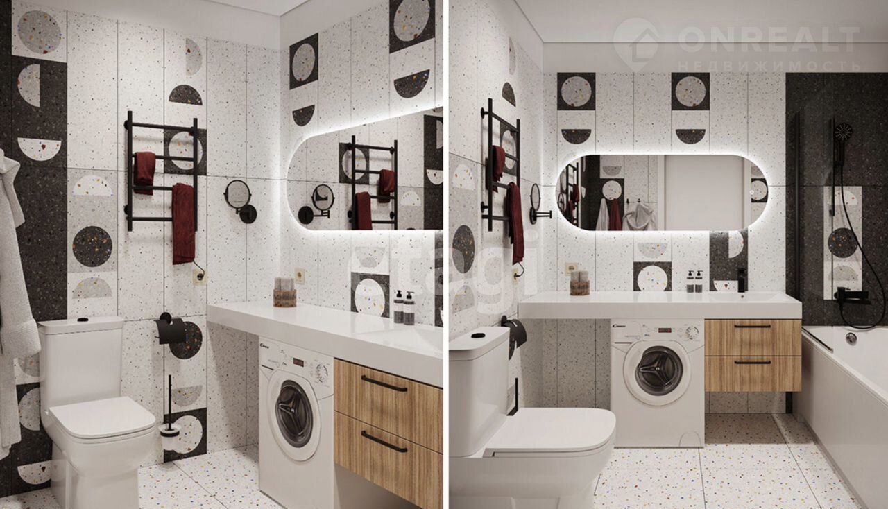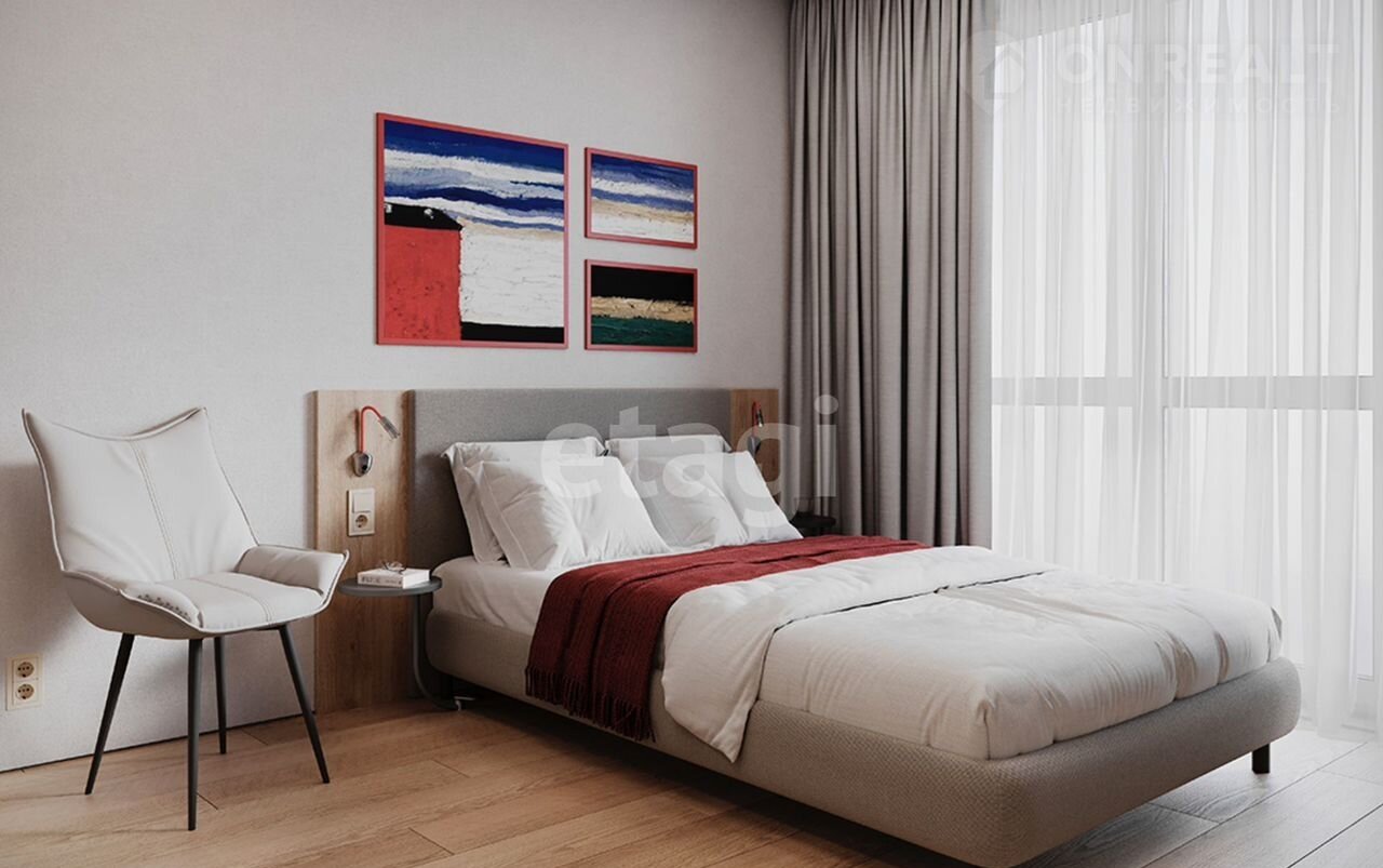 Полы: ламинат 33 класс, пластиковым плинтусом с кабель-каналом, санузел — керамогранит.Стены: фактурные обои под покраску, санузел — керамическая плитка или керамогранит.Потолок: входная зона и санузел — ГКЛ с окраской матовой влагостойкой краской, спальня и гостиная — матовая влагостойкая краскаЭлектрика: белые электрические выключатели и розеточные группы, электрический полотенцесушитель, входная зона и санузел — встроенные точечные светодиодные светильники, спальня и гостиная — выводы под осветительные приборы.Сантехника: стальные панельные приборы отопления, унитаз-компакт белого цвета, подвесная раковина с пьедесталом белого цвета,  смесители для раковины и ванны (цвет – хром),ванная акриловая с экраном.Прочее: вывод канализации для подключения стиральной машины.Уступка.Сдача 3 квартал 2026
