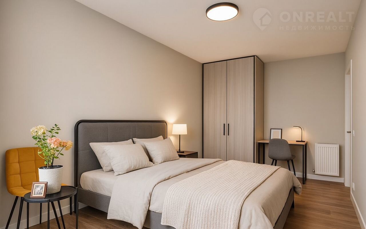 Комфортная планировка соответствует высоким современным стандартам: вместительная прихожая, коридор, просторная кухня-гостиная, ванная и гостевой санузел, большая мастер-спальня и гардеробная.