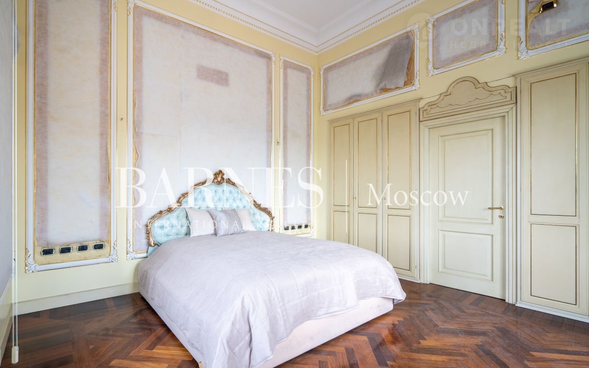 240 кв.м., пятый последний этаж, на первом уровне - две просторные мастер-спальни, эффектная гостиная с камином, кухня, гардеробные, подсобные помещения.