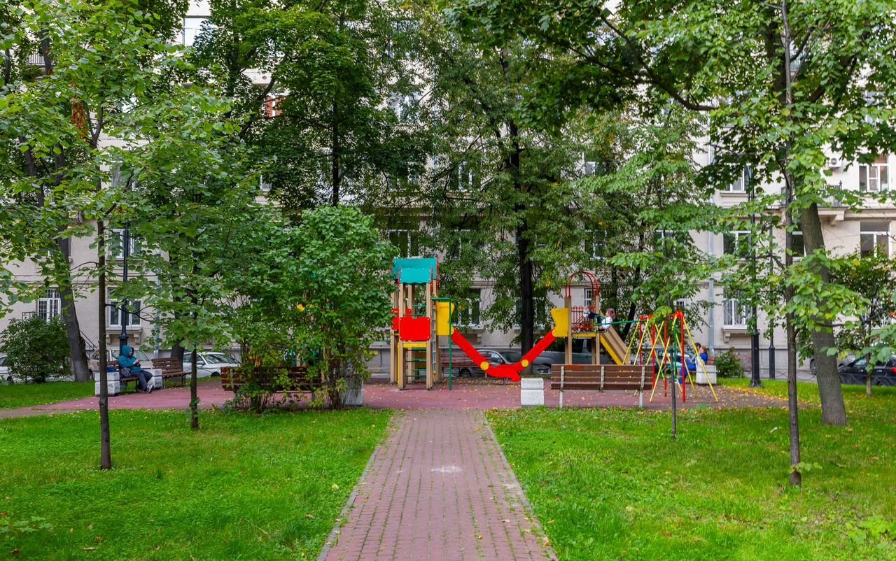 Нет обилия новостроек, социальная инфраструктура не перегружена. Дом находится внутри квартала, минимальный шум от автомобильных дорог. Много зелени, взрослых деревьев.