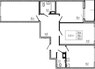 Продажа 3-ком. квартиры, 107 м2