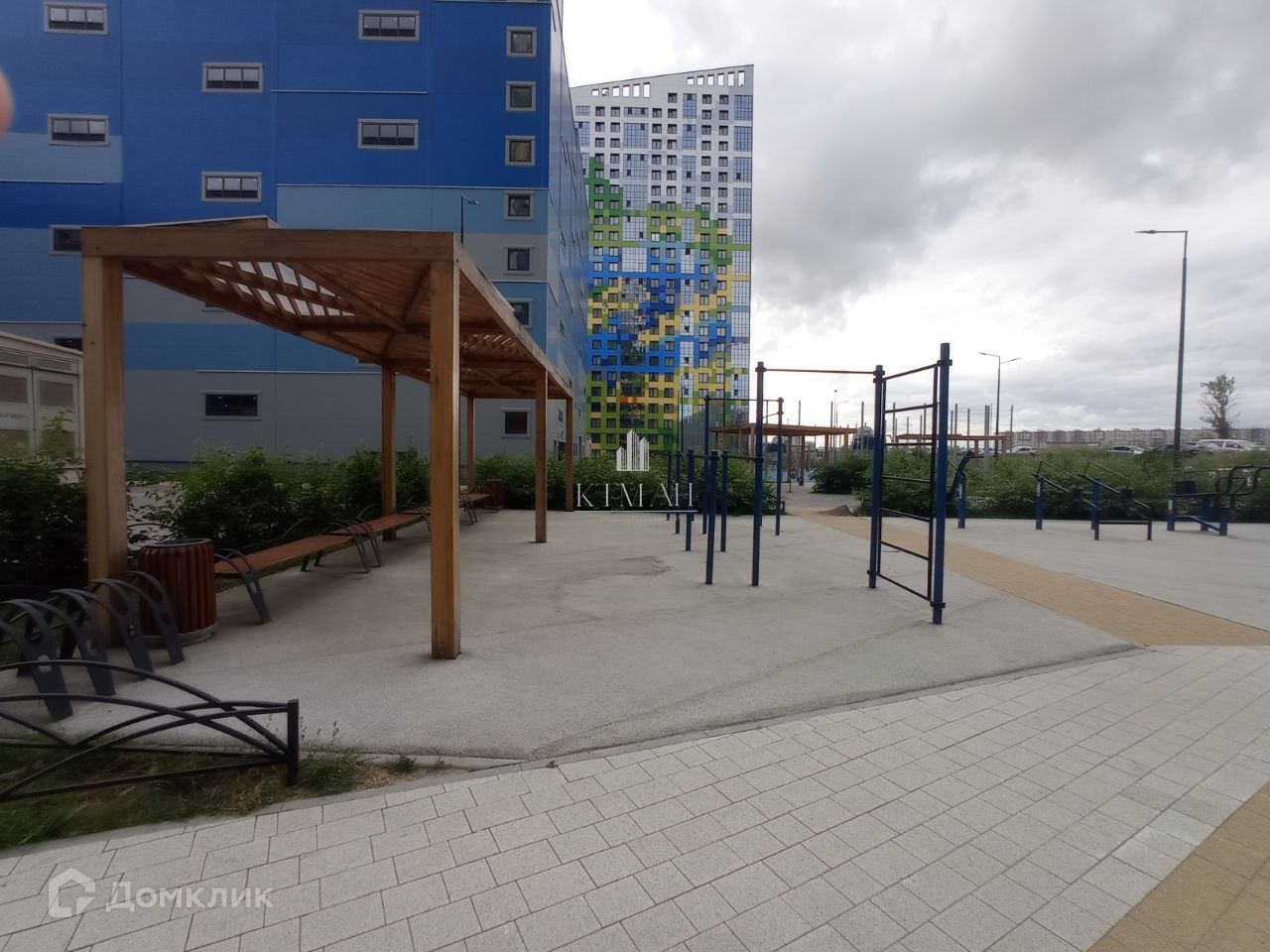 Территория комплекса с лучшим благоустройством в данной локации-  ландшафтный дизайн, множество детских и спортивных площадок, кафе. Пост охраны, видеонаблюдение, закрытий двор.  .