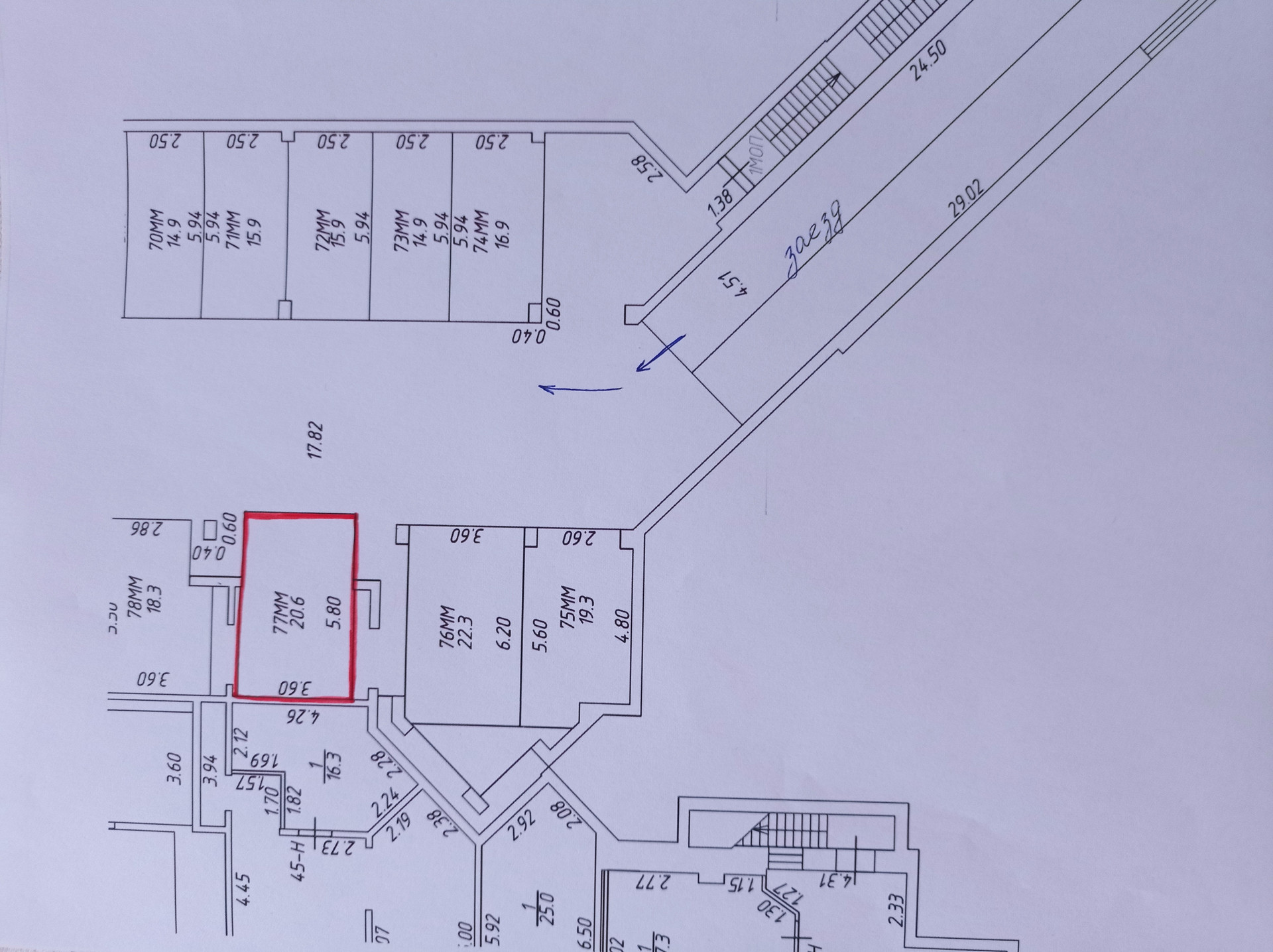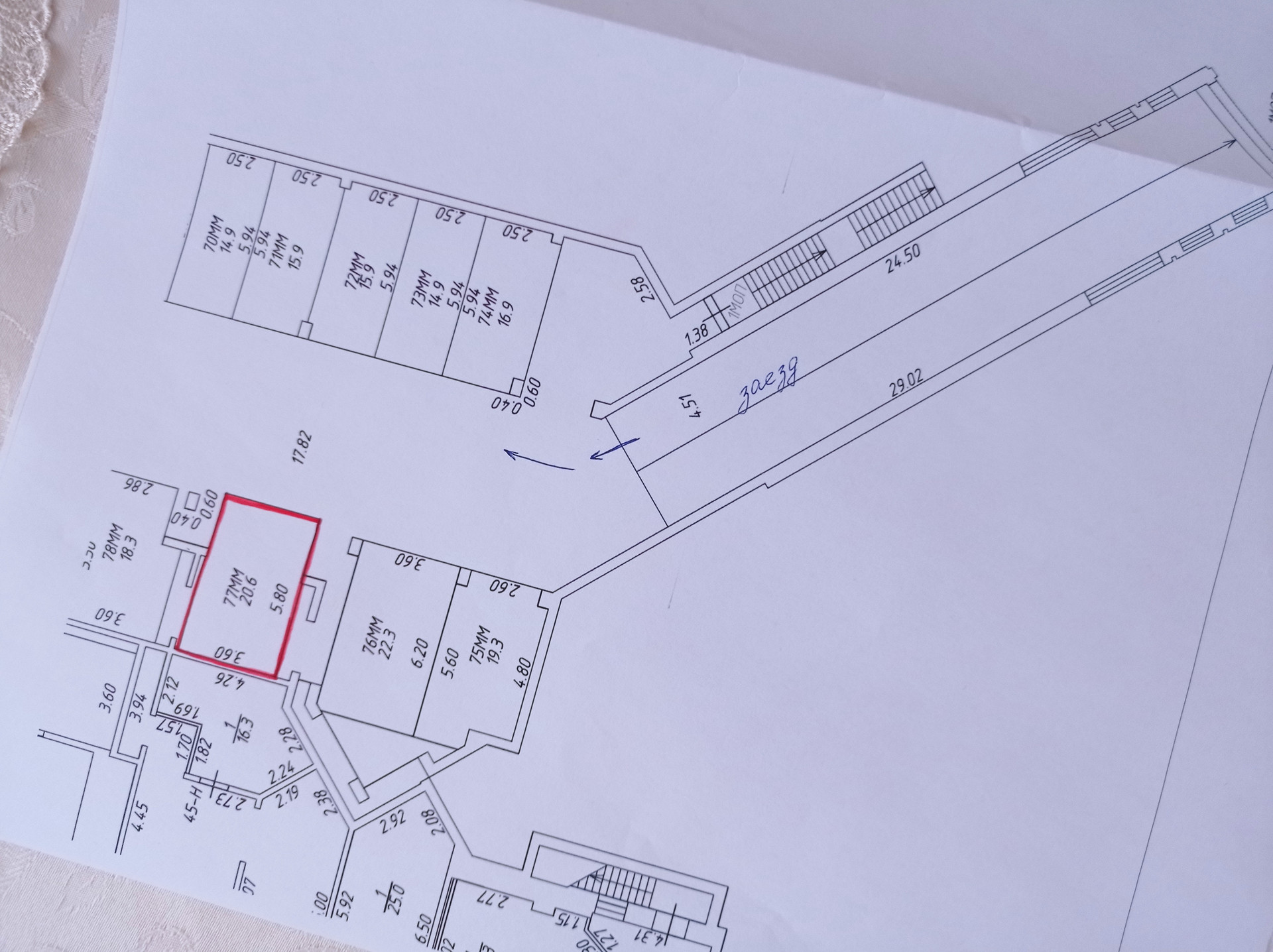 Большое и широкое, очень удобно парковаться, площадью 20,6 кв.м.