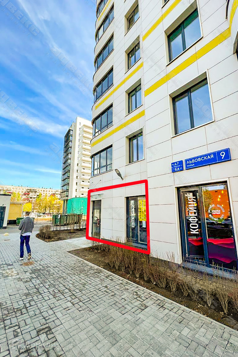 Помещение расположено в ЖК “Дом на Львовской”. Расположено на углу дома и имеет 4 витринных окна и отдельный вход с улицы.