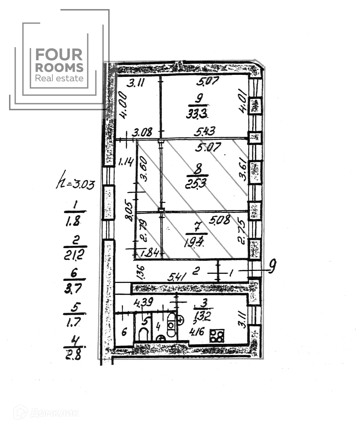 Высота потолков 3.03 м