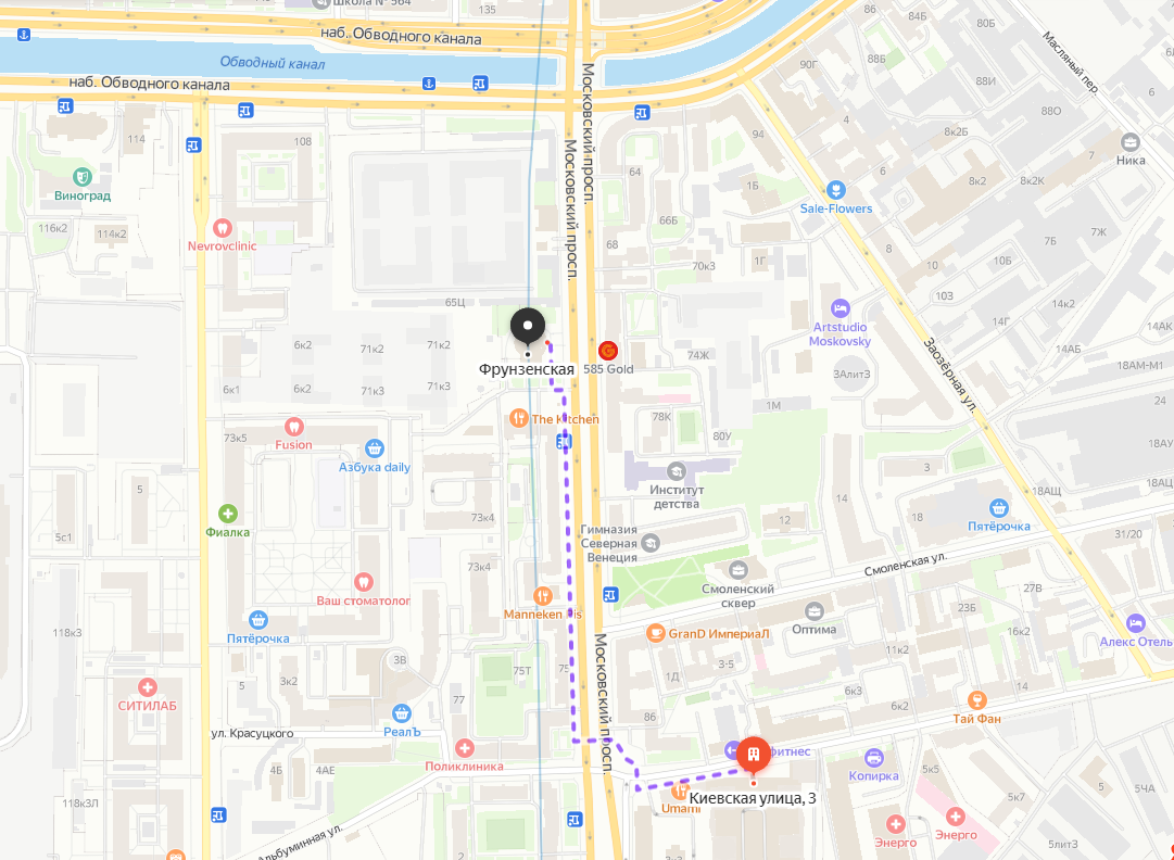 Прекрасное расположение и хорошая транспортная доступность! 600 м до станции метро Фрунзенская. В 3-х минутах ходьбы находятся остановки общественного транспорта. Рядом важные магистрали города, выезд на ЗСД и КАД.  До центра города - 5-10  минут на транспорте. Аэропорт Пулково в 20 минутах езды, до Московского вокзала – 15 минут.