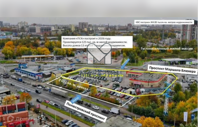 ЗДАНИЕ с земельным участком (4811м2) на углу проспекта Маршала Блюхера и Кантемировской улицы.