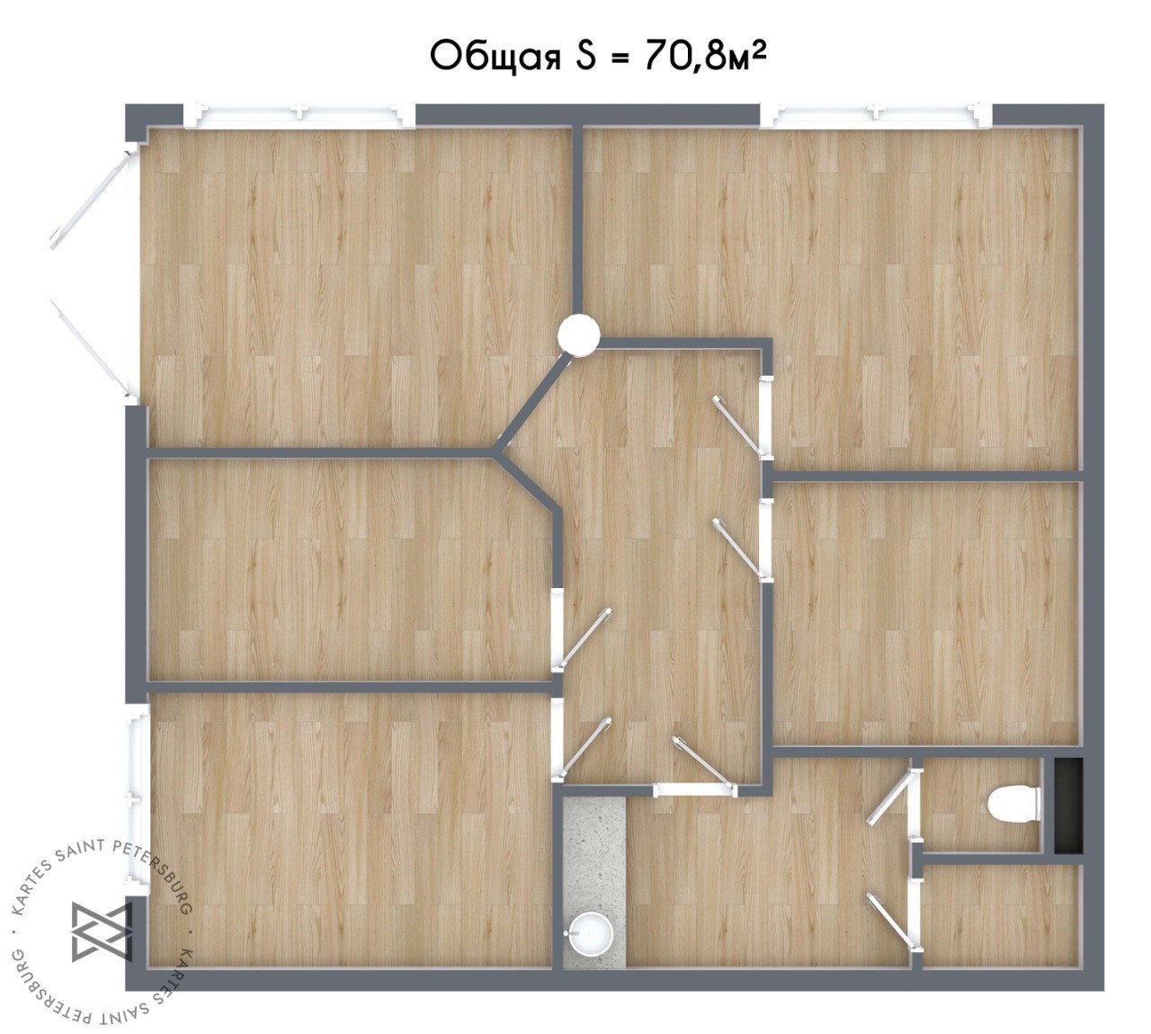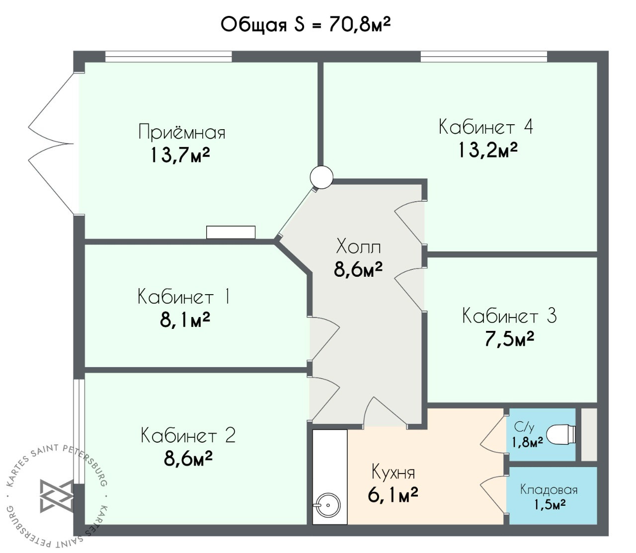 Общая площадь 70.8 м2