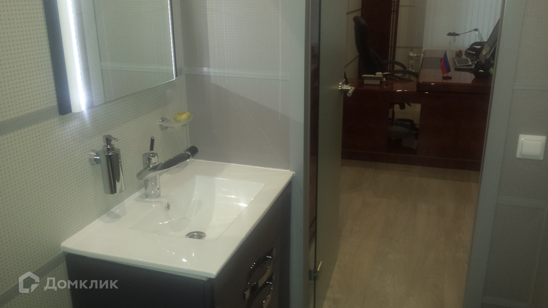 Офис мебелированный с современным ремонтом, разделен на кабинеты. Есть оснащенная кухня, переговорная и кабинет директора со свои санузлом и санузлом для персонала.
