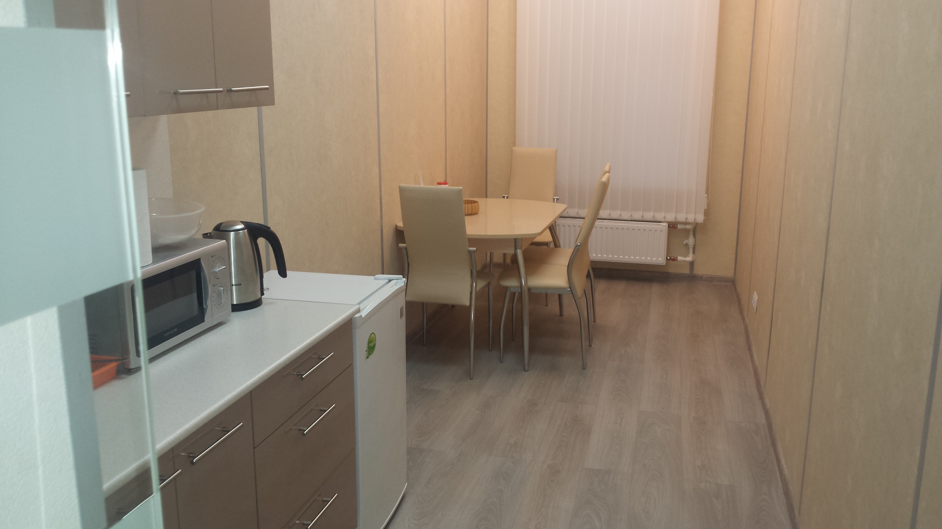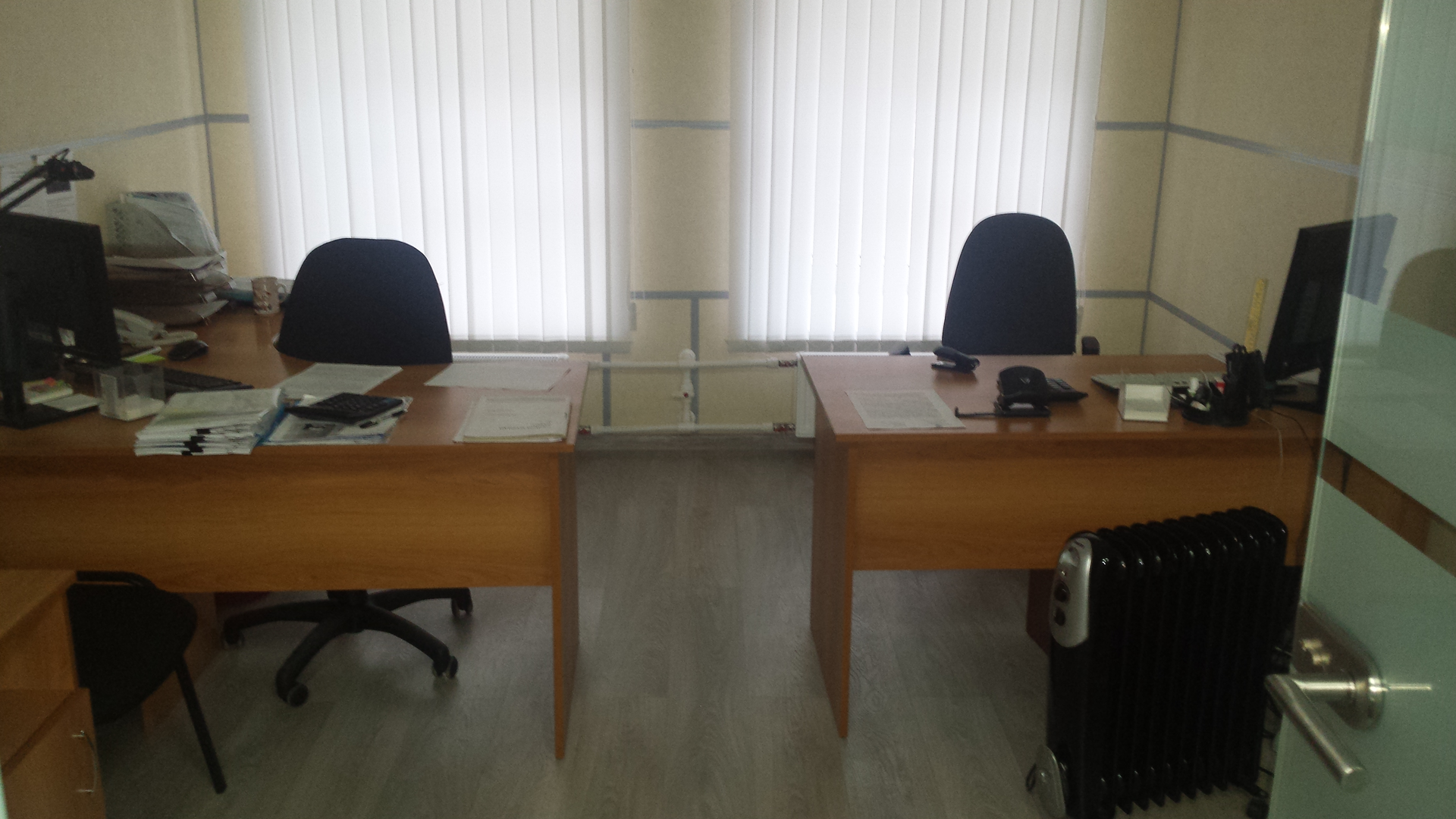 Офис мебелированный с современным ремонтом, разделен на кабинеты. Есть оснащенная кухня, переговорная и кабинет директора со свои санузлом и санузлом для персонала.