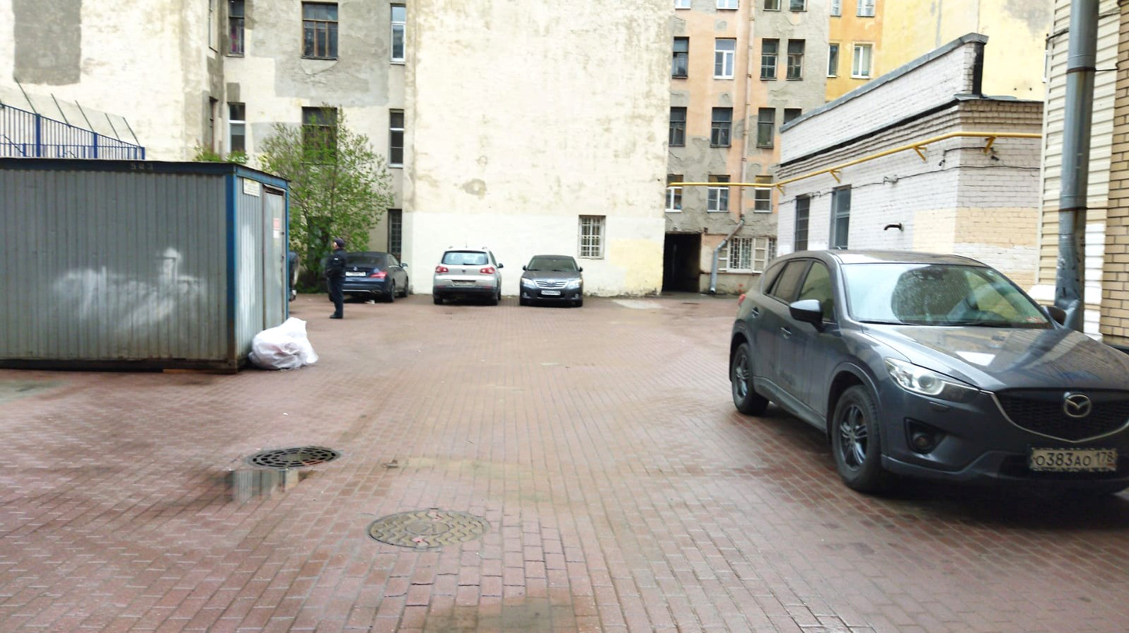 Два входа - с улицы и со двора. В здании есть лифты. Парковочные места во дворе.