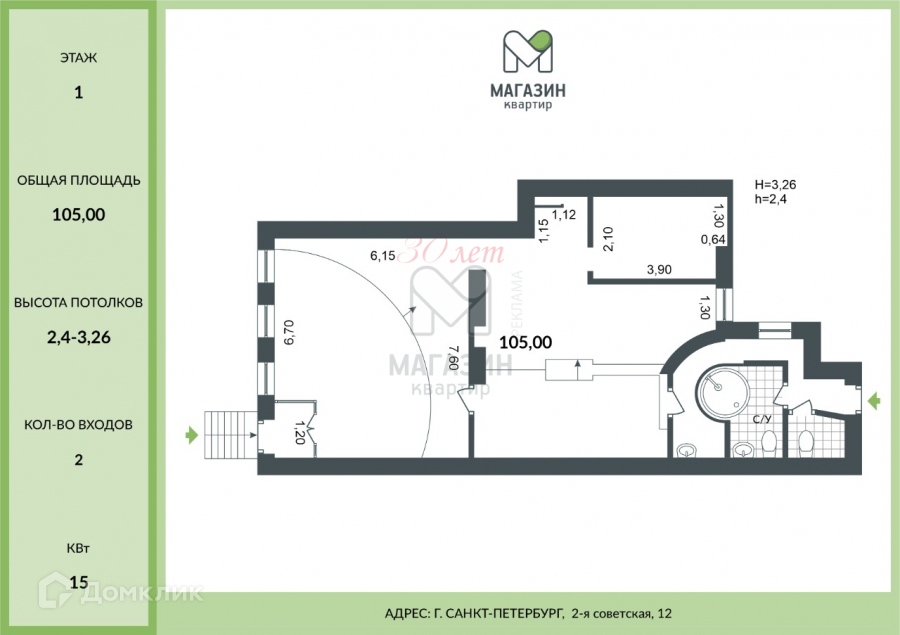 Площадь помещения 105 м2.
