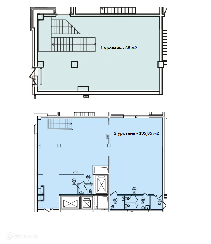 Площадь помещения 282 м2. Занимает 2 этажа бизнес-центра. Высота потолков первого этажа 6 м, второго этажа 4,7 м.