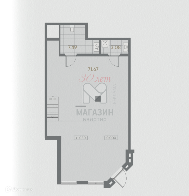 Два уровня, назначение - свободное. Планировка свободная, предусмотрены 2 мокрые точки. Высота окон 2,48 - 3,50. Сдача в мае 2024 года.