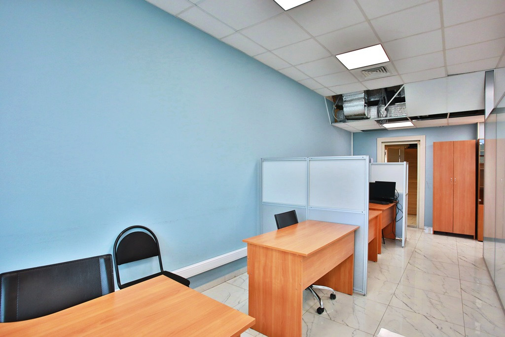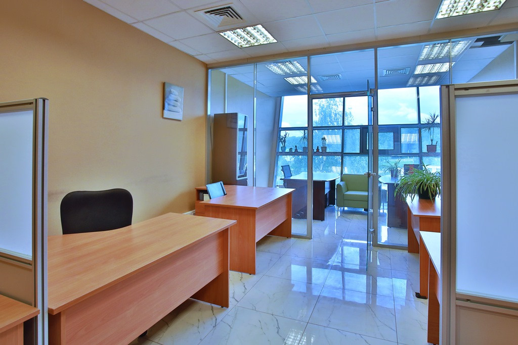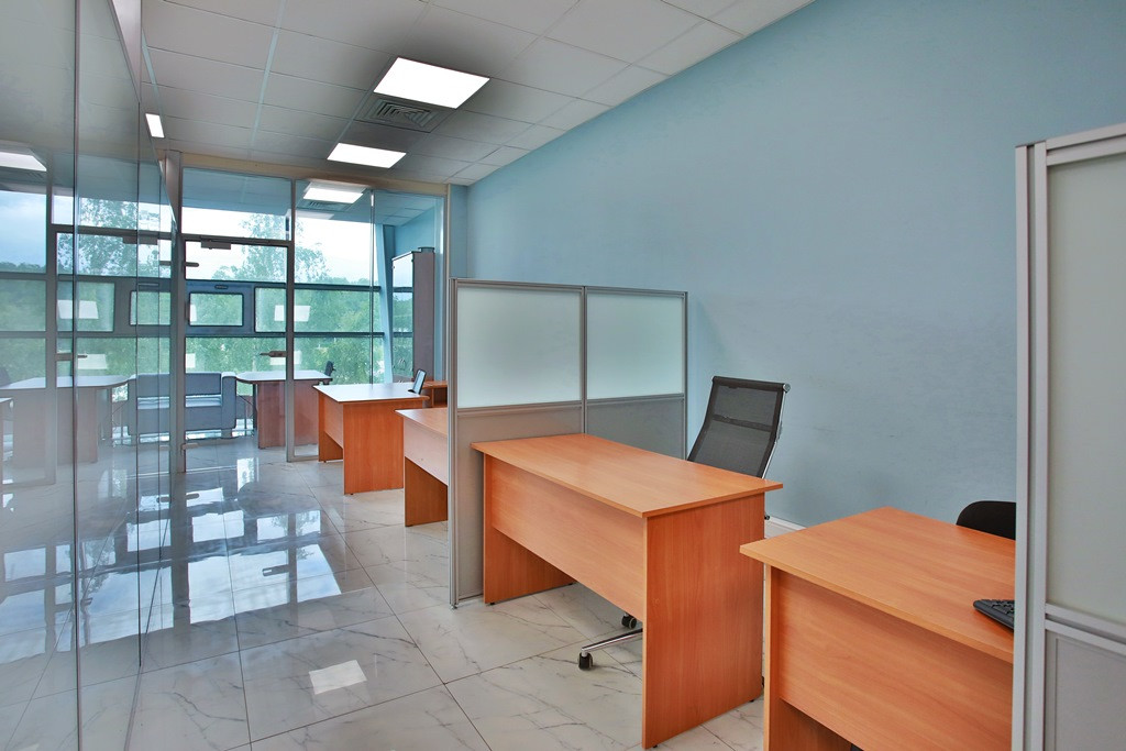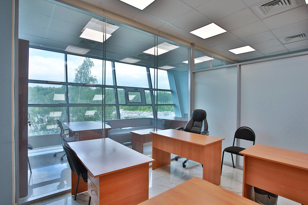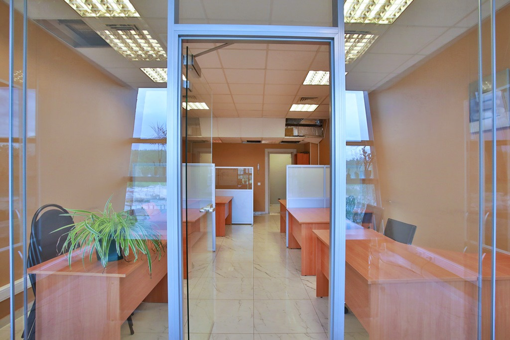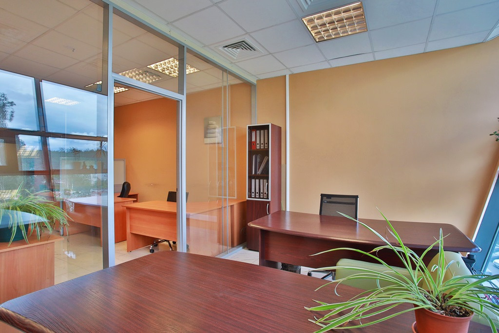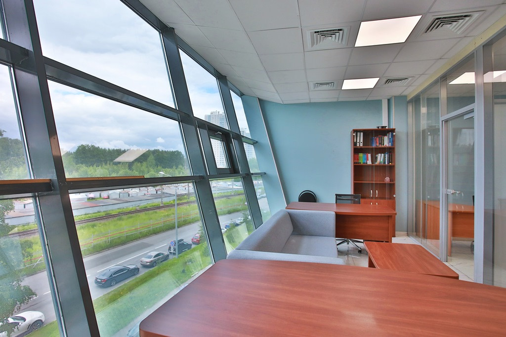 Офис разделен на 3 зала рассчитанных на 40 рабочих мест. Каждый зал имеет современные глухие и прозрачные шумоизоляционные перегородки, часть из которых – мобильна, возможно изменение площади и расстановки рабочих мест. В 2 залах предусмотрены рабочие места руководителей, оснащенные комфортной мебелью, перегородки с шумоизоляцией.