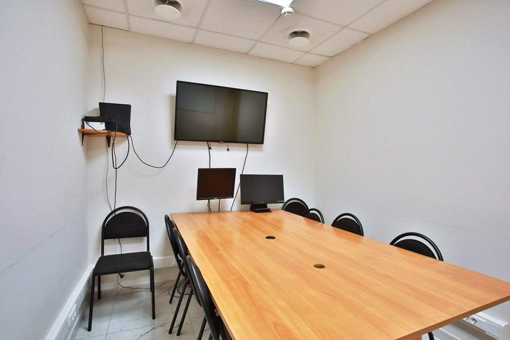2. Переговорная комната 9,7 кв.м для ведения конфиденциальных переговоров и защиты конфиденциальной информации, аттестованная ФСТЭК России под п. 4, 5, ч.1, ст. 12 ФЗ 99 о лицензировании отдельных видов деятельности - разработка средств защиты информации, техническая защита конфиденциальной информации. Переговорная комната оснащена генераторами белого шума.