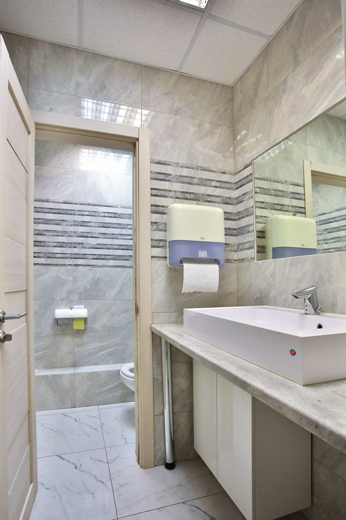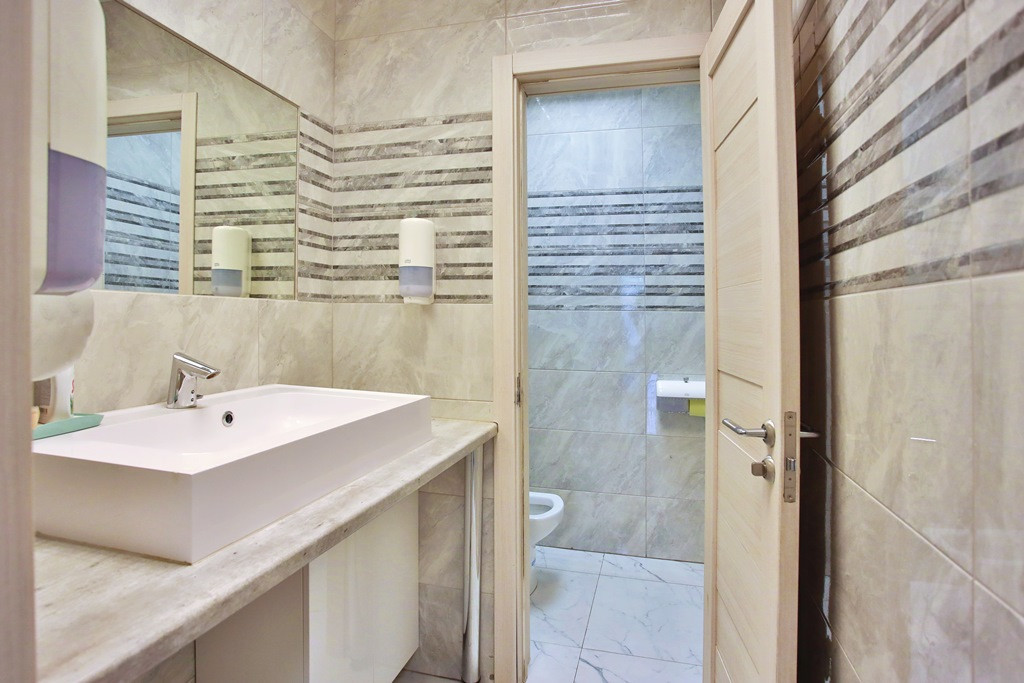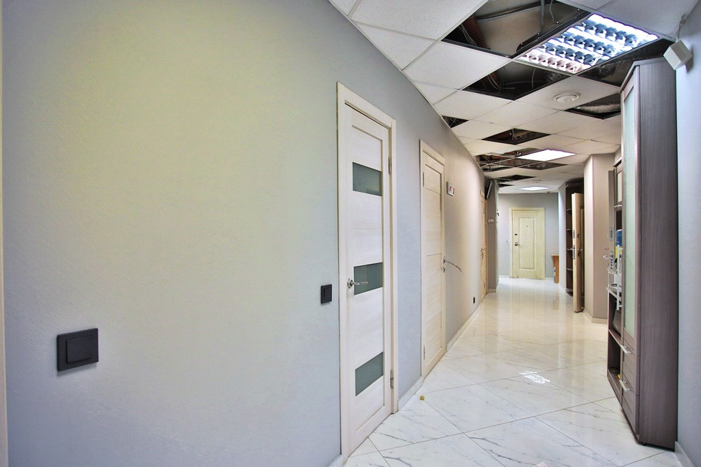 Общая площадь офиса 262 кв.м, высота потолка – 4 м, шикарное панорамное фасадное остекление с видом на Удельный парк. Во всех помещениях – современный кафель без значимых дефектов, обои под покраску, подвесной потолок, два санузла в кафеле оснащенные всем необходимым современным оборудованием, в отдельном помещении есть душевая комната, организована кухня и гардеробная.
